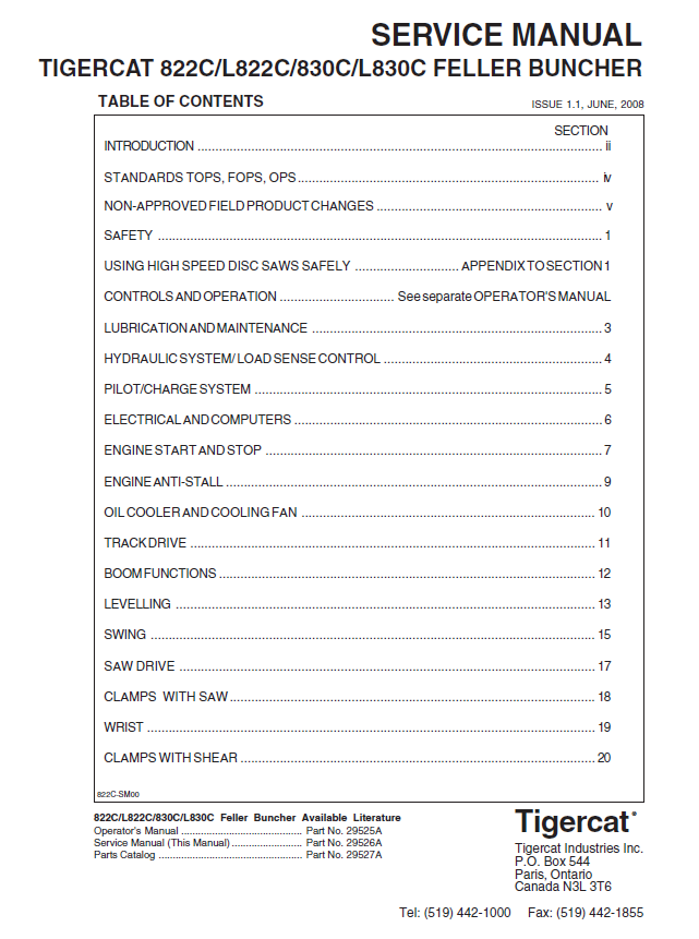 This is the official service manual for Tigercat 830C Feller Bunchers (83011001-83013000, 83011001-83011999). This PDF download provides all the maintenance and repair information necessary to keep your equipment running in top condition. With detailed instructions, diagrams, and photos, this Tigercat manual is the perfect reference for any technician.