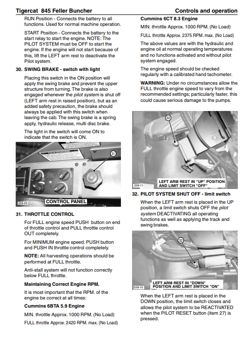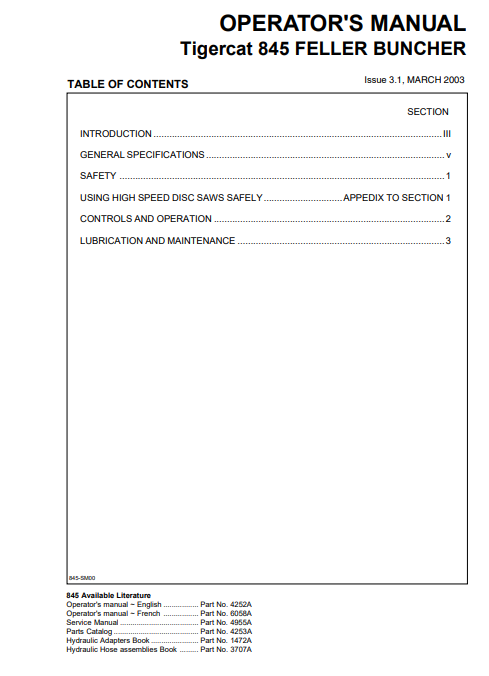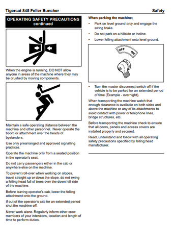 Tigercat 845 Feller Buncher Operator/User Manual (8450101-8450475) - PDF File Download