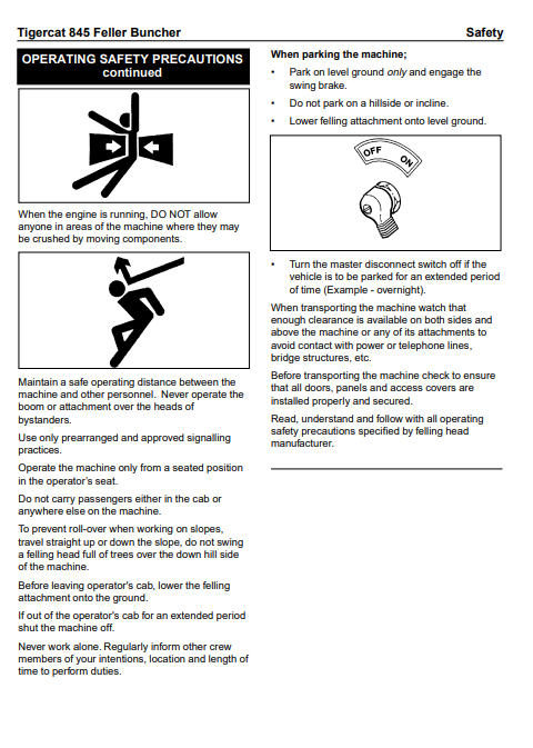 Download Complete Operator/User Manual PDF For Tigercat 845 Feller Buncher | Serial No. (8450101-8450475)