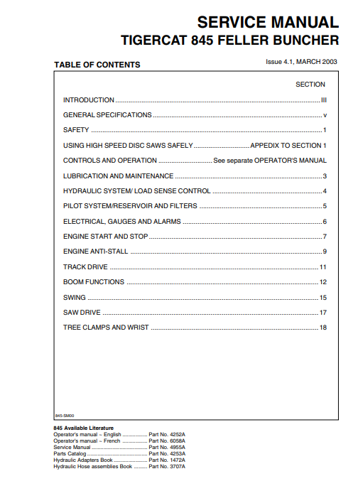 Download Complete Service Repair Manual PDF For Tigercat 845 Feller Buncher | Serial No. (8450101-8450475)