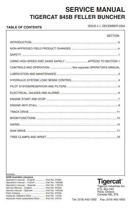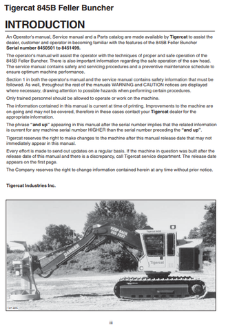 Download Complete Service Repair Manual PDF For Tigercat 845B Feller Buncher | Serial No. (8450501-8451499)
