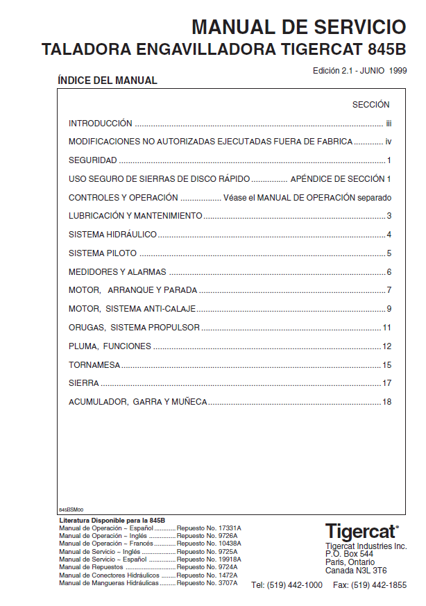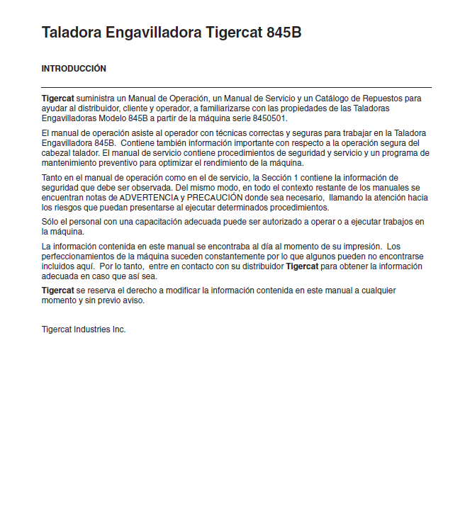 TIGERCAT 845B BUNCHER SERVICE MANUAL