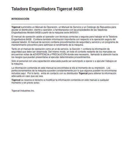 This PDF service manual contains all the information you need to maintain, operate and service your Tigercat 845B Feller Buncher (8450501-8451499). Covering troubleshooting, engine repair, and a wide variety of other topics, it provides in-depth information to maximize efficiency and productivity.