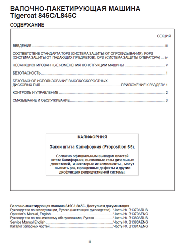 Operator Manual Contents: