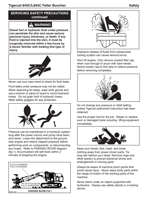 Tigercat 845C Feller Buncher Operator/User Manual (84511501-84512500, 84511501-84511860) - PDF File Download
