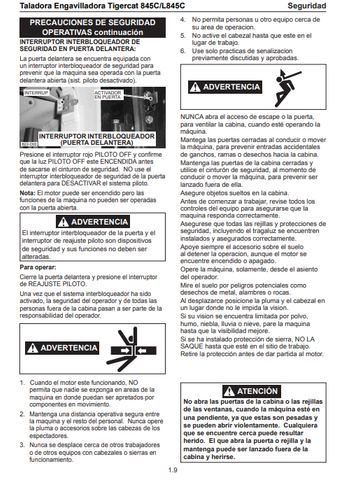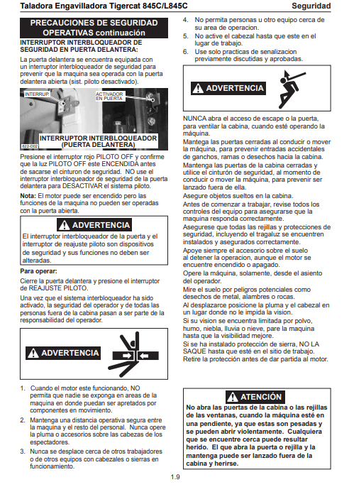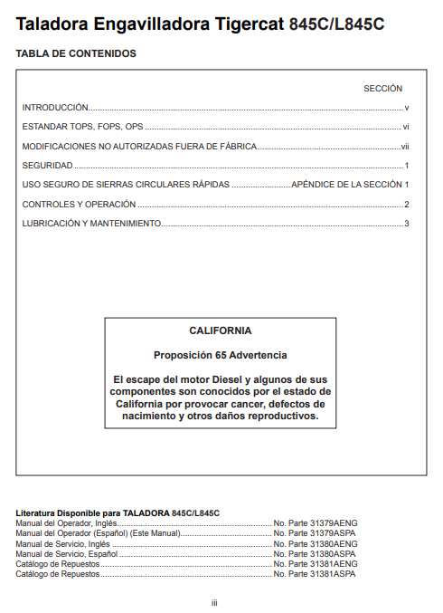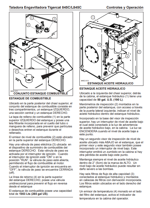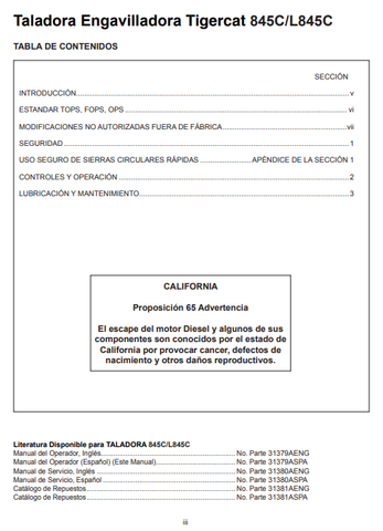 Download Complete Operator/User Manual PDF For Tigercat 845C Feller Buncher | Serial No. (84511501-84512500, 84511501-84511860) - Spanish