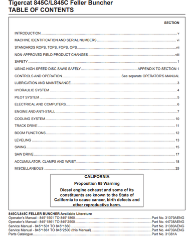 Download Complete Service Repair Manual PDF For Tigercat 845C Feller Buncher | Serial No. (84511501-84512500, 84511861-84512500)