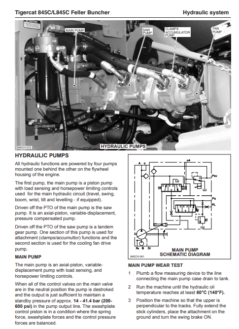 Tigercat 845C Feller Buncher Service Repair Manual (84511501-84512500, 84511501-84511860) - PDF File Download