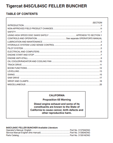 Download Complete Service Repair Manual PDF For Tigercat 845C Feller Buncher | Serial No. (84511501-84512500, 84511501-84511860)