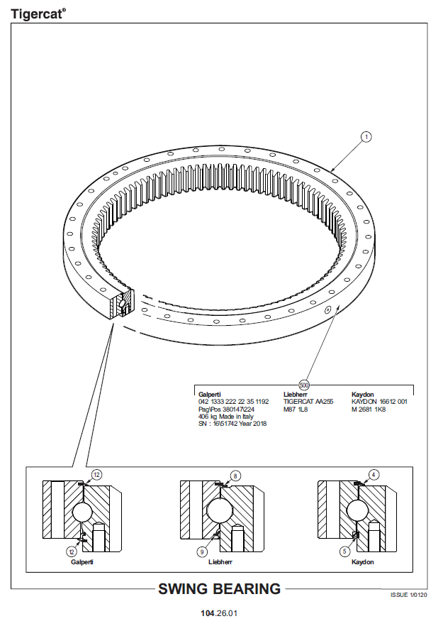 TIGERCAT 845D PARTS CATALOGUE MANUAL