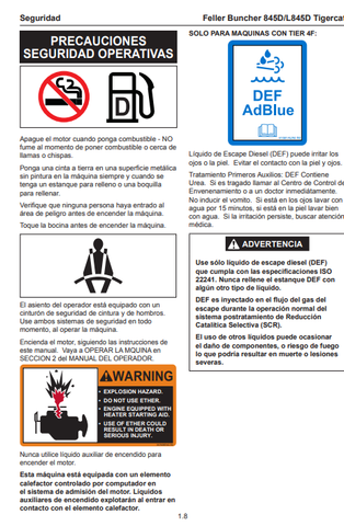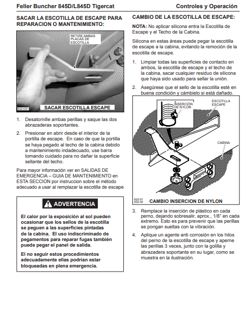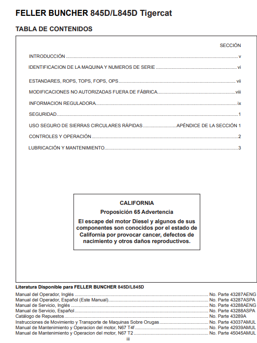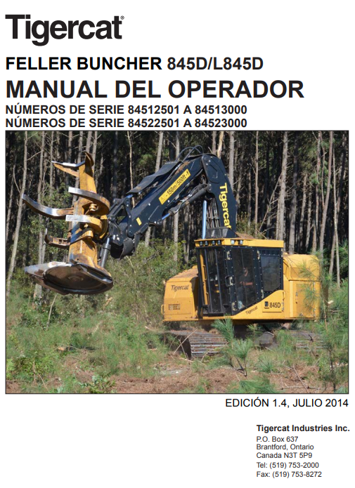 Download Complete Operator/User Manual PDF For Tigercat 845D Feller Buncher | Serial No. (84512501-84513000) - Spanish