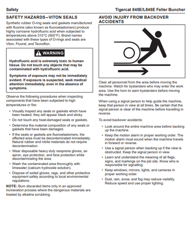 Tigercat 845E Feller Buncher Operator/User Manual (84513001-84513500) - PDF File Download
