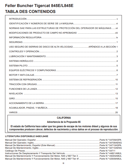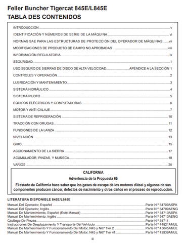 Download Complete Service Repair Manual PDF For Tigercat 845E Feller Buncher | Serial No. (84513001-84513500) - Spanish