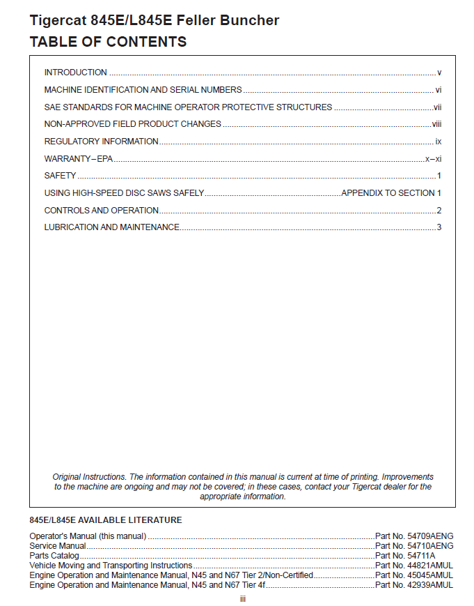 Download Complete Operator Manual For Tigercat 845E Feller Buncher | Serial No. (84513001-84513500)