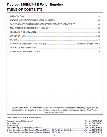 This Operator Manual is perfect for Tigercat 845E Feller Buncher users. It contains the necessary safety information, important operating instructions, and detailed maintenance procedures needed to keep your machine running smoothly and efficiently. The PDF format offers a user-friendly readout of all information. Download today to access the full manual.