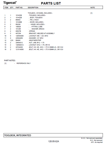 TIGERCAT 850 PARTS CATALOGUE MANUAL