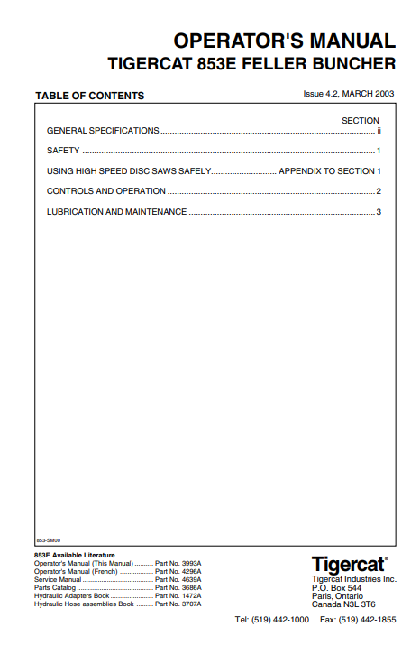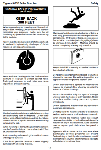Tigercat 853E Feller Buncher Operator/User Manual (8530101-8530450) - PDF File Download