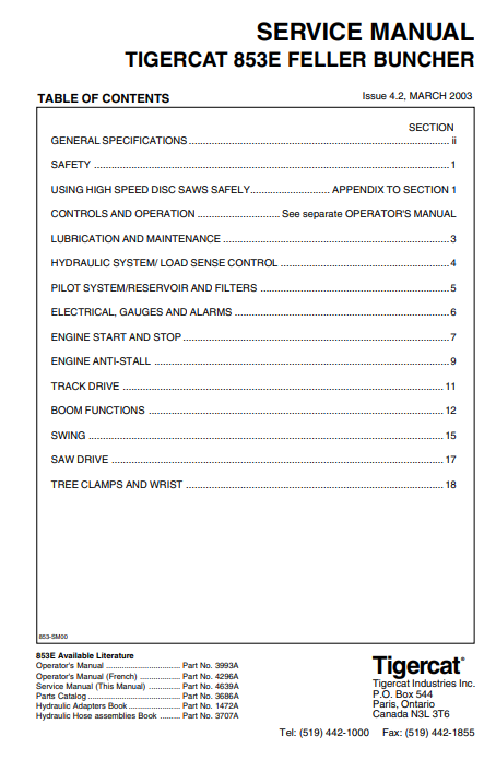 Download Complete Service Repair Manual PDF For Tigercat 853E Feller Buncher | Serial No. (8530101-8530450)
