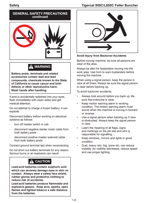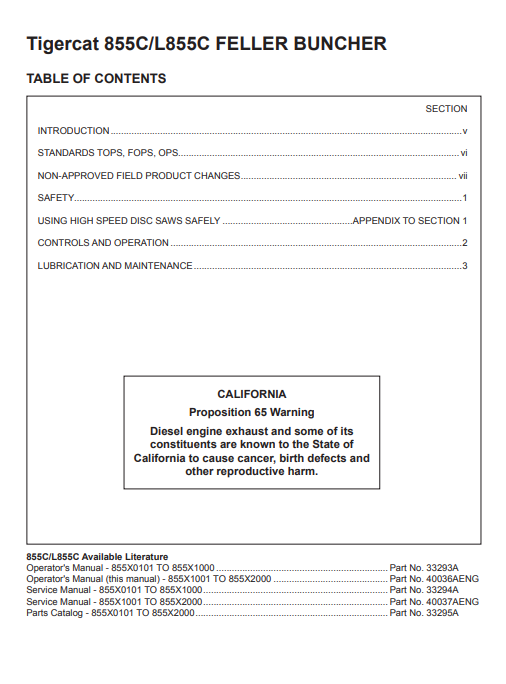 Tigercat 855C Feller Buncher Operator/User Manual (85510101-85512000, 85511001-85512000) - PDF File Download