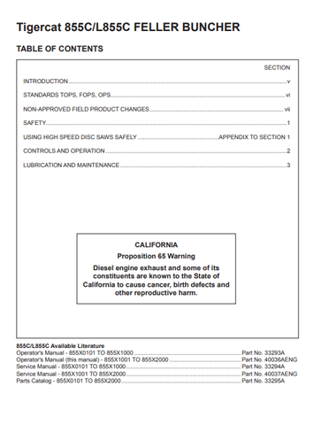 Download Complete Operator/User Manual PDF For Tigercat 855C Feller Buncher | Serial No. (85510101-85512000, 85511001-85512000)
