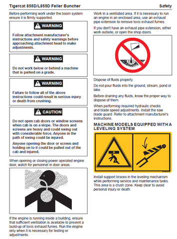 Download Complete Service Manual For Tigercat 855D Feller Buncher | Serial No. (85512001-85513000)