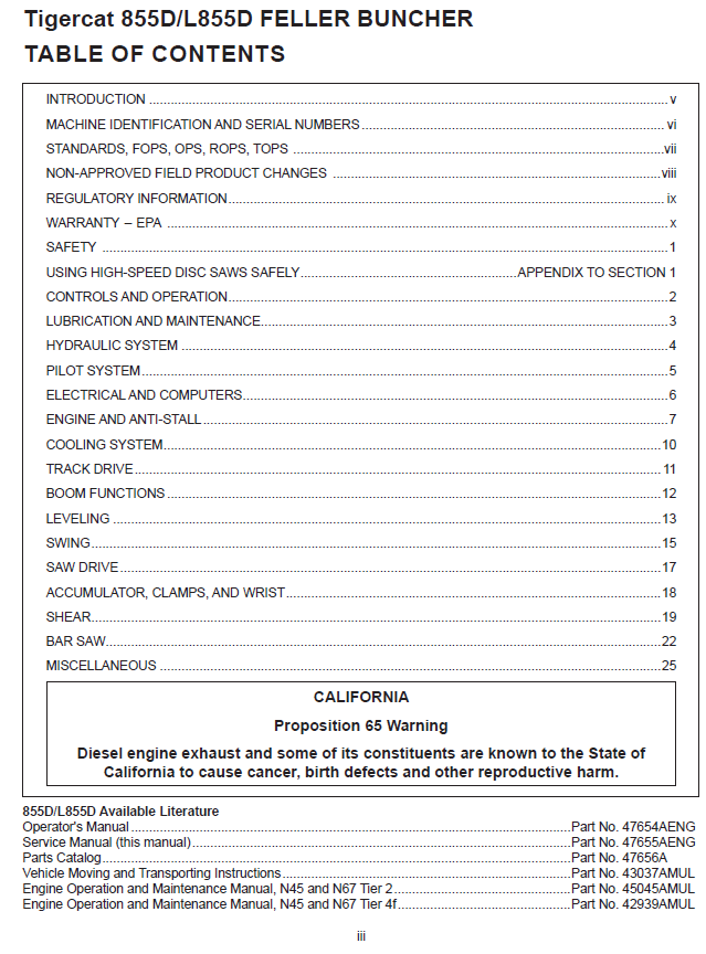 This Tigercat 855D Feller Buncher Service Manual (85512001-85513000) provides technicians with the complete technical information necessary to safely service and maintain this machine. This high-quality PDF file download contains detailed explanations of all procedures and is an invaluable resource for technicians and do-it-yourselfers.