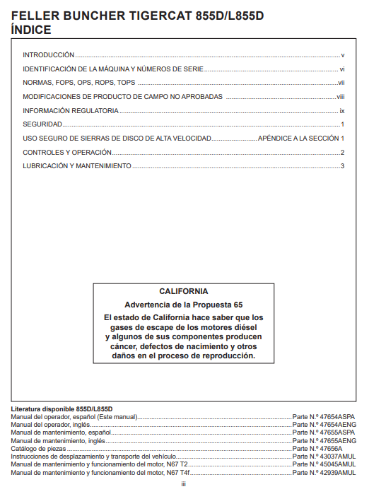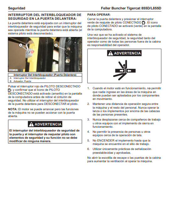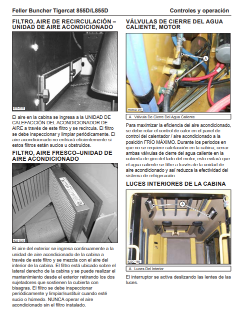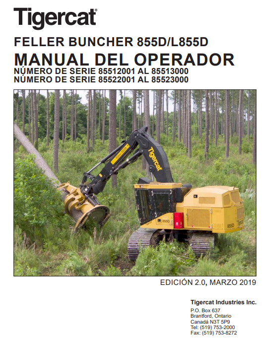 Download Complete Operator/User Manual PDF For Tigercat 855D Feller Buncher | Serial No. (85512001-85513000) - Spanish