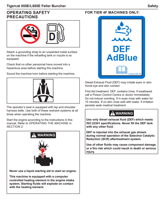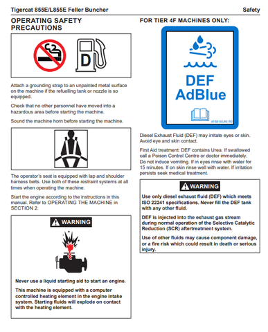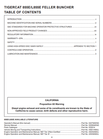 Tigercat 855E Feller Buncher Operator/User Manual (85513001-85514000) - PDF File Download