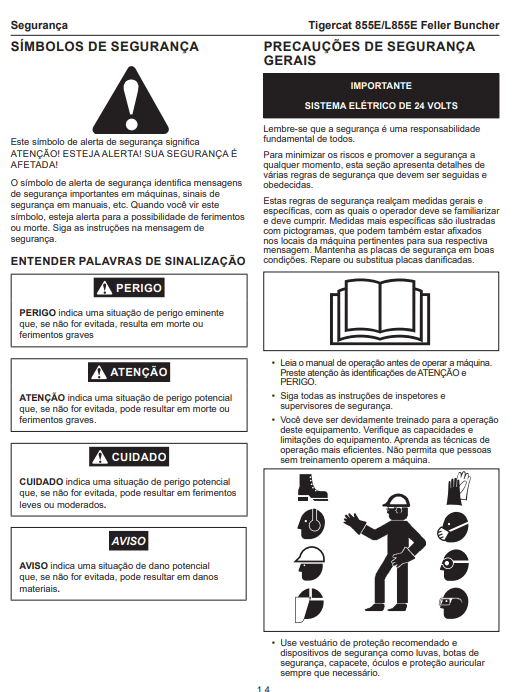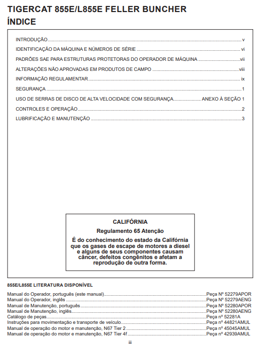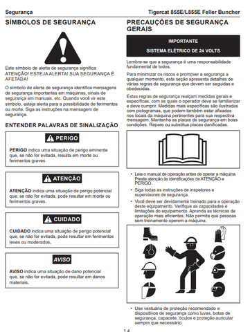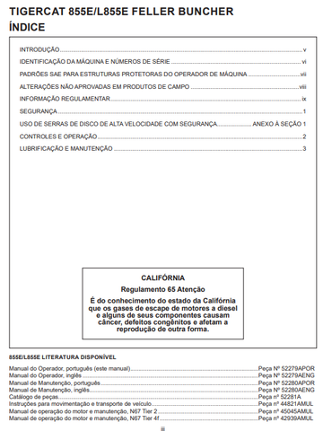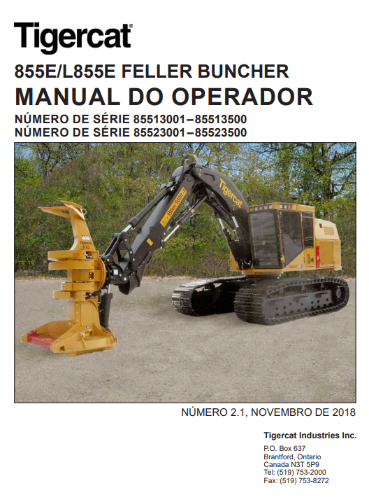 Download Complete Operator/User Manual PDF For Tigercat 855E Feller Buncher | Serial No. (85513001-85514000) - Portuguese