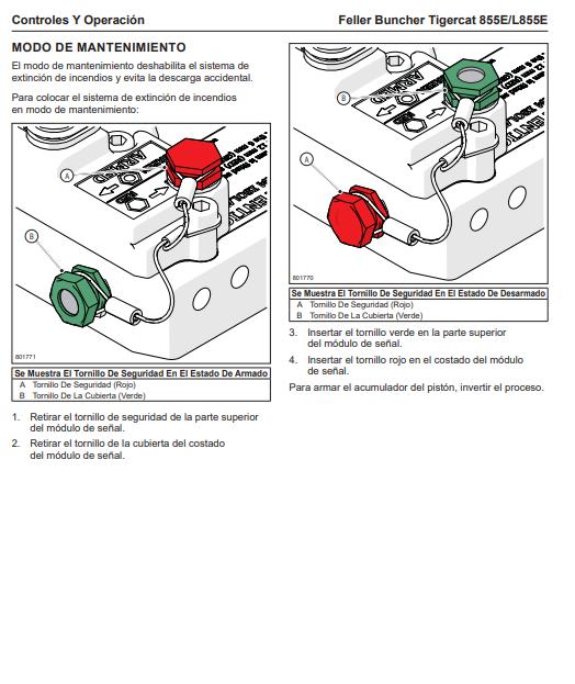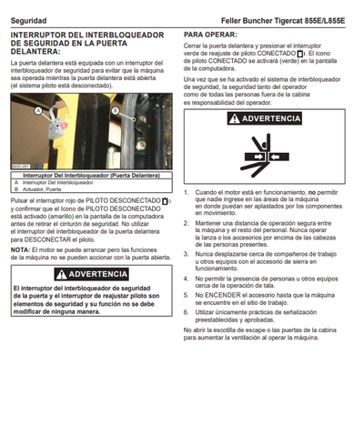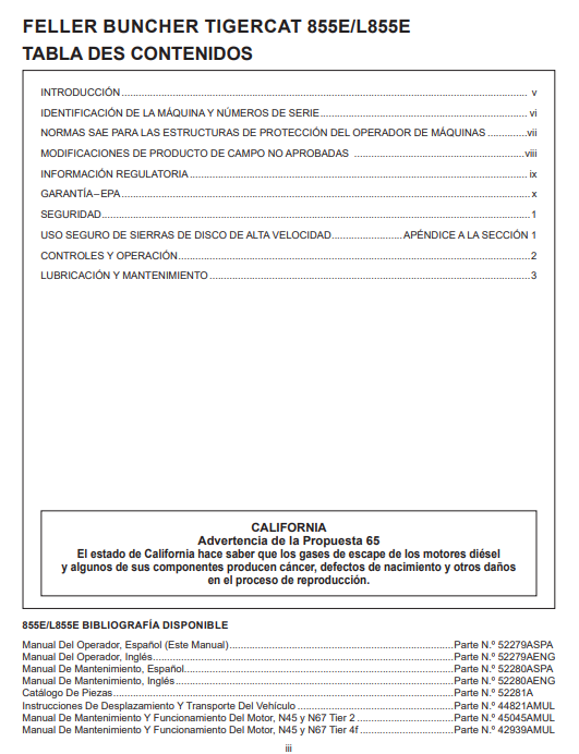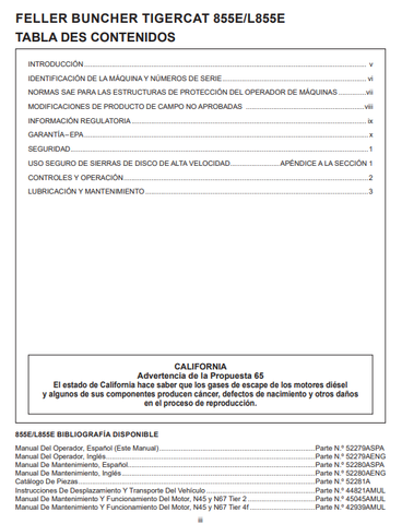 Download Complete Operator/User Manual PDF For Tigercat 855E Feller Buncher | Serial No. (85513001-85514000) - Spanish