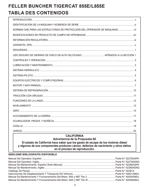 Download Complete Service Repair Manual PDF For Tigercat 855E Feller Buncher | Serial No. (85513001-85514000) - Spanish
