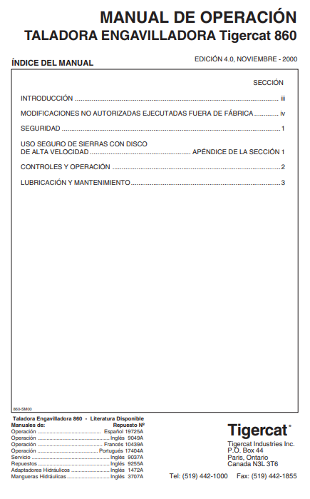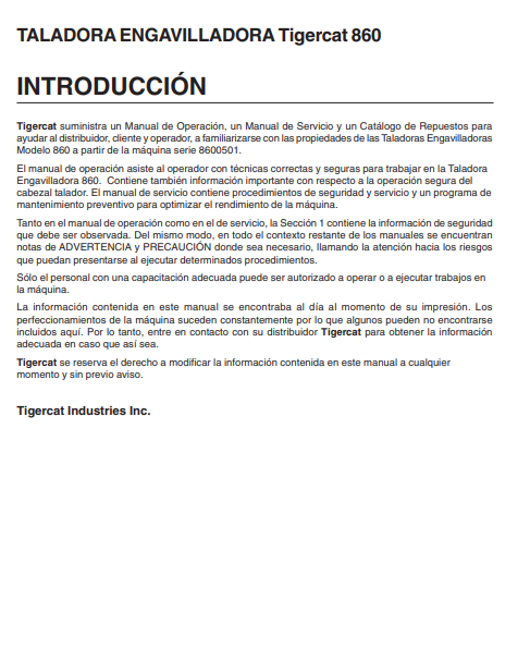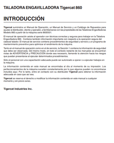 Download Complete Operator/User Manual PDF For Tigercat 860 Feller Buncher | Serial No. (8600501-86011499) - Spanish