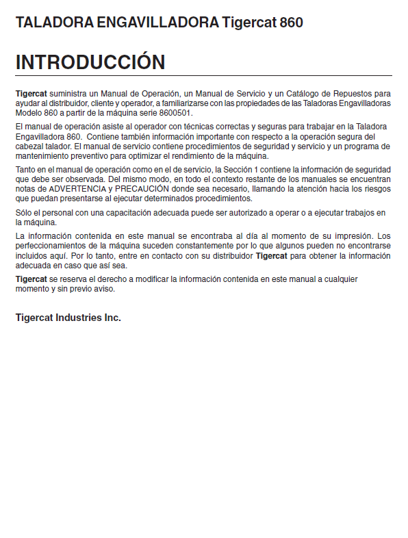 This official Tigercat 860 Feller Buncher Operator/User Manual is the authoritative source for comprehensive information needed to operate and maintain your Tigercat 860 Feller Buncher. Featuring easy to follow instructions and diagrams, this PDF download is essential for efficient operation and maintenance of your Tigercat 860 Feller Buncher.