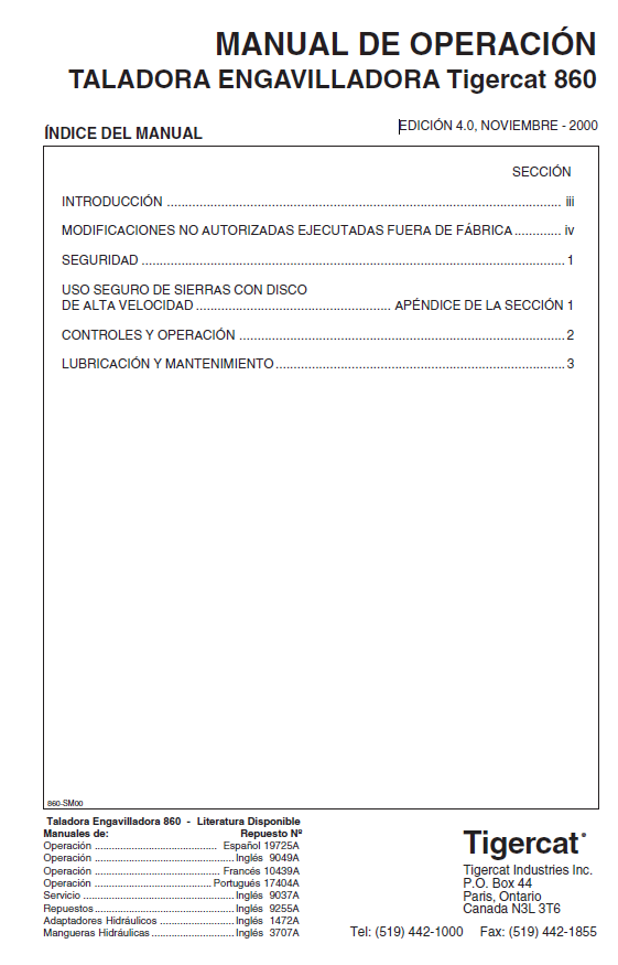 TIGERCAT 860 BUNCHER OPERATOR/USER MANUAL