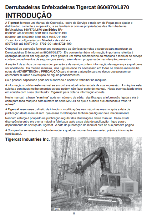 Download Complete Operator/User Manual PDF For Tigercat 860 Feller Buncher | Serial No. (8600501-86011499) - Portuguese
