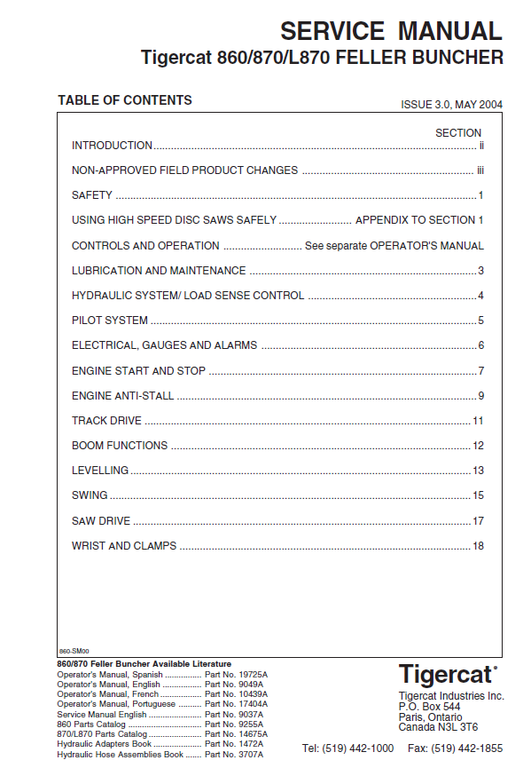 TIGERCAT 860 BUNCHER SERVICE MANUAL