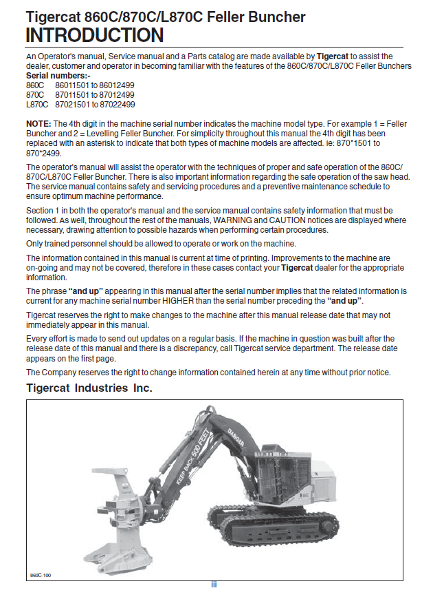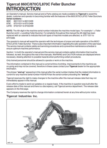 Download Complete Service Manual For Tigercat 860C Feller Buncher | Serial No. (86011501-86013500, 86011501-86012100)