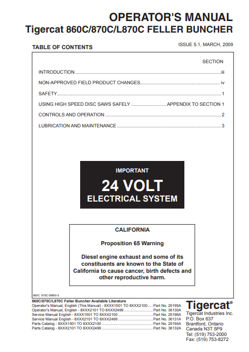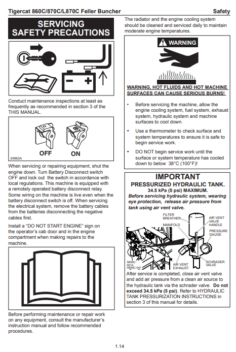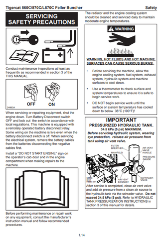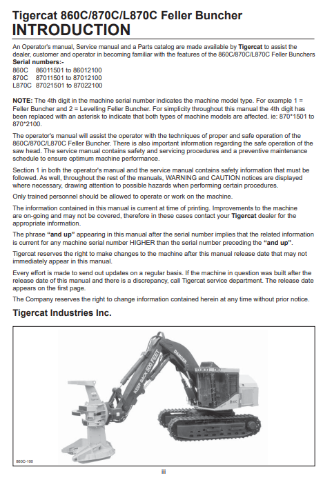 Tigercat 860C Feller Buncher Operator/User Manual (86011501-86013500, 86011501-86012100) - PDF File Download