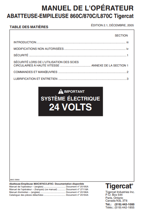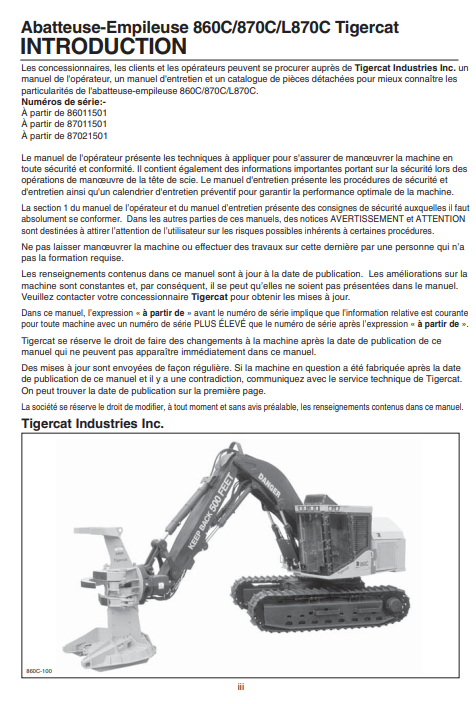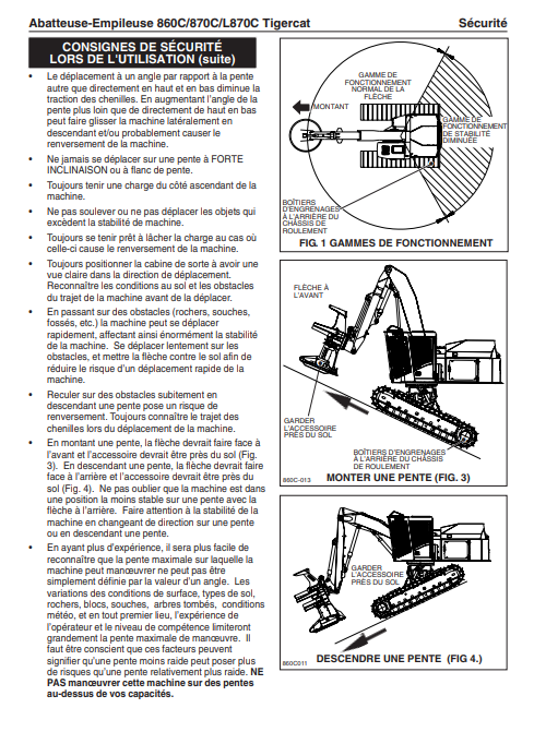 Download Complete Operator/User Manual PDF For Tigercat 860C Feller Buncher | Serial No. (86011501-86013500, 86011501-86012100) - French