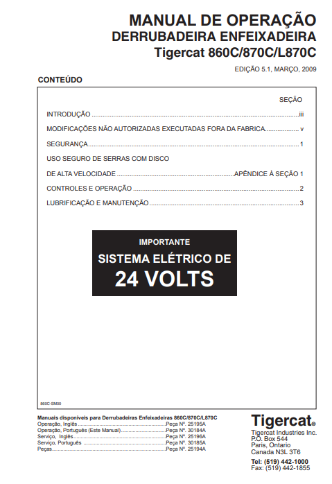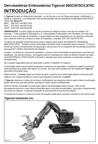 Download Complete Operator/User Manual PDF For Tigercat 860C Feller Buncher | Serial No. (86011501-86013500, 86011501-86012100) - Portuguese