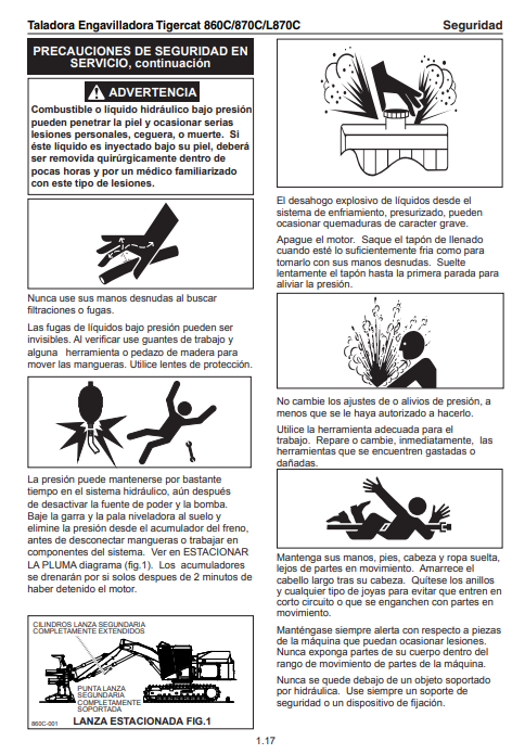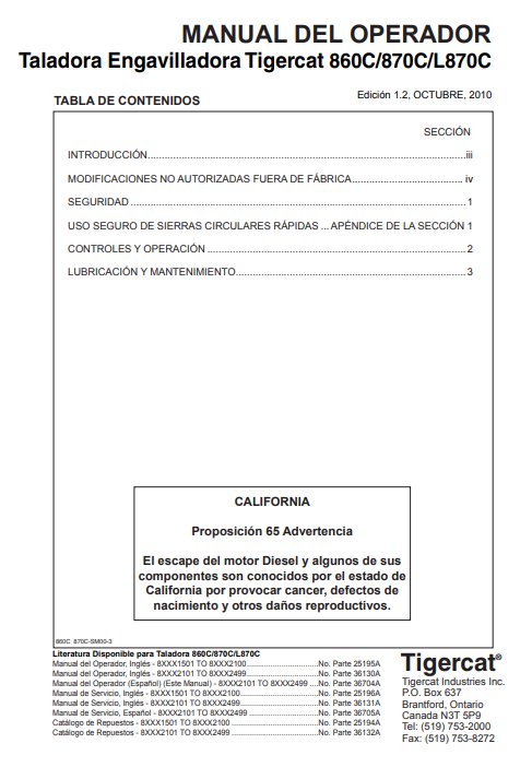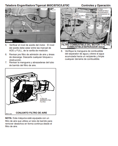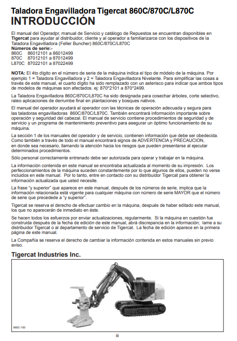 Download Complete Operator/User Manual PDF For Tigercat 860C Feller Buncher | Serial No. (86011501-86013500, 86012101-86012499) - Spanish