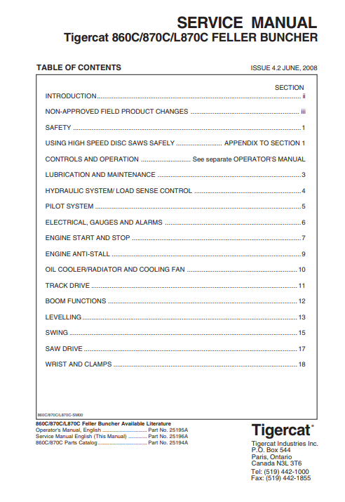 Download Complete Service Repair Manual PDF For Tigercat 860C Feller Buncher | Serial No. (86011501-86013500, 86011501-86012100)