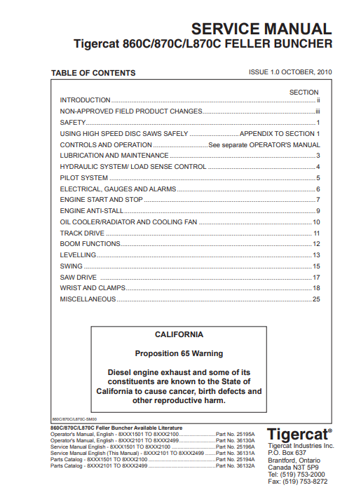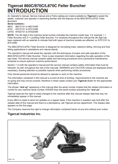 Download Complete Service Repair Manual PDF For Tigercat 860C Feller Buncher | Serial No. (86011501-86013500, 86012101-86012499)