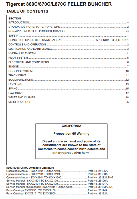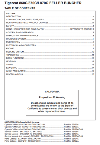 Download Complete Service Repair Manual PDF For Tigercat 860C Feller Buncher | Serial No. (86011501-86013500, 86012601-86013500)