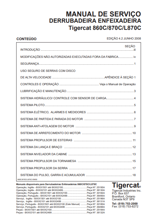 Download Complete Service Repair Manual PDF For Tigercat 860C Feller Buncher | Serial No. (86011501-86013500, 86011501-86012100) - Portuguese