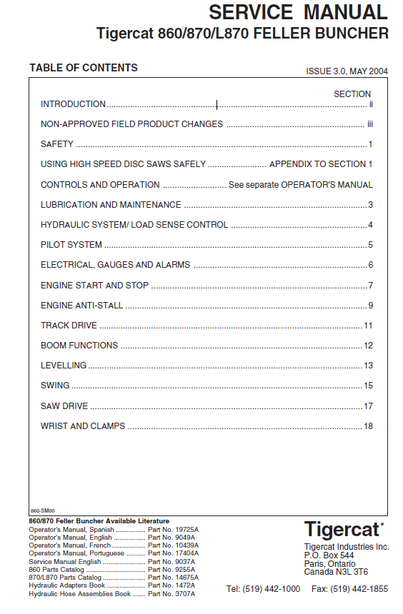 TIGERCAT 860T BUNCHER SERVICE MANUAL
