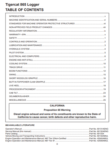 Tigercat 865 Logger Service Repair Manual (8650001-8650500) - PDF File Download