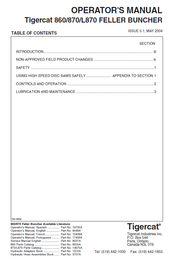 TIGERCAT 870 FELLER BUNCHER OPERATOR MANUAL