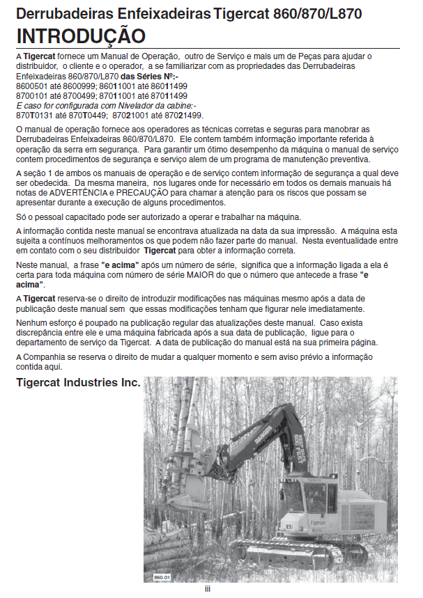 Download Complete Operator/User Manual For Tigercat 870 Feller Buncher | Serial No. (8700101-87011499)