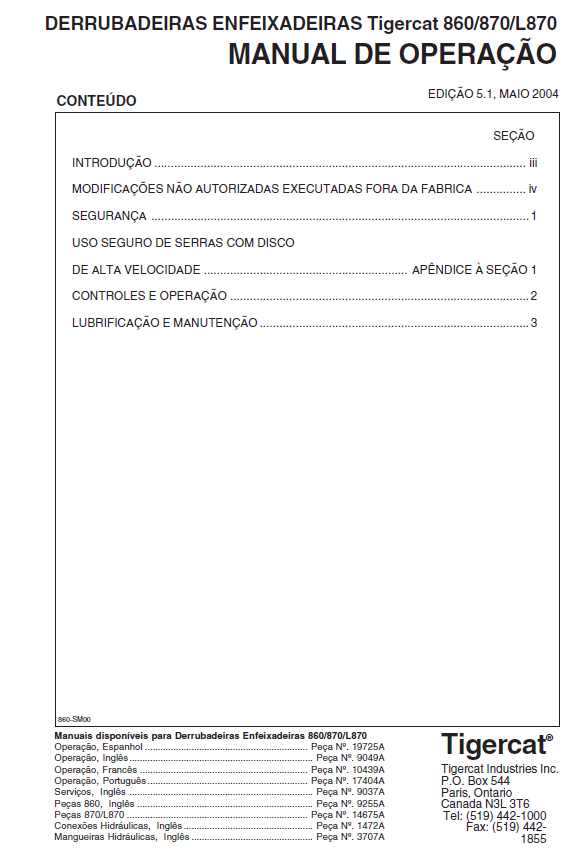 TIGERCAT 870 FELLER BUNCHER MANUAL
